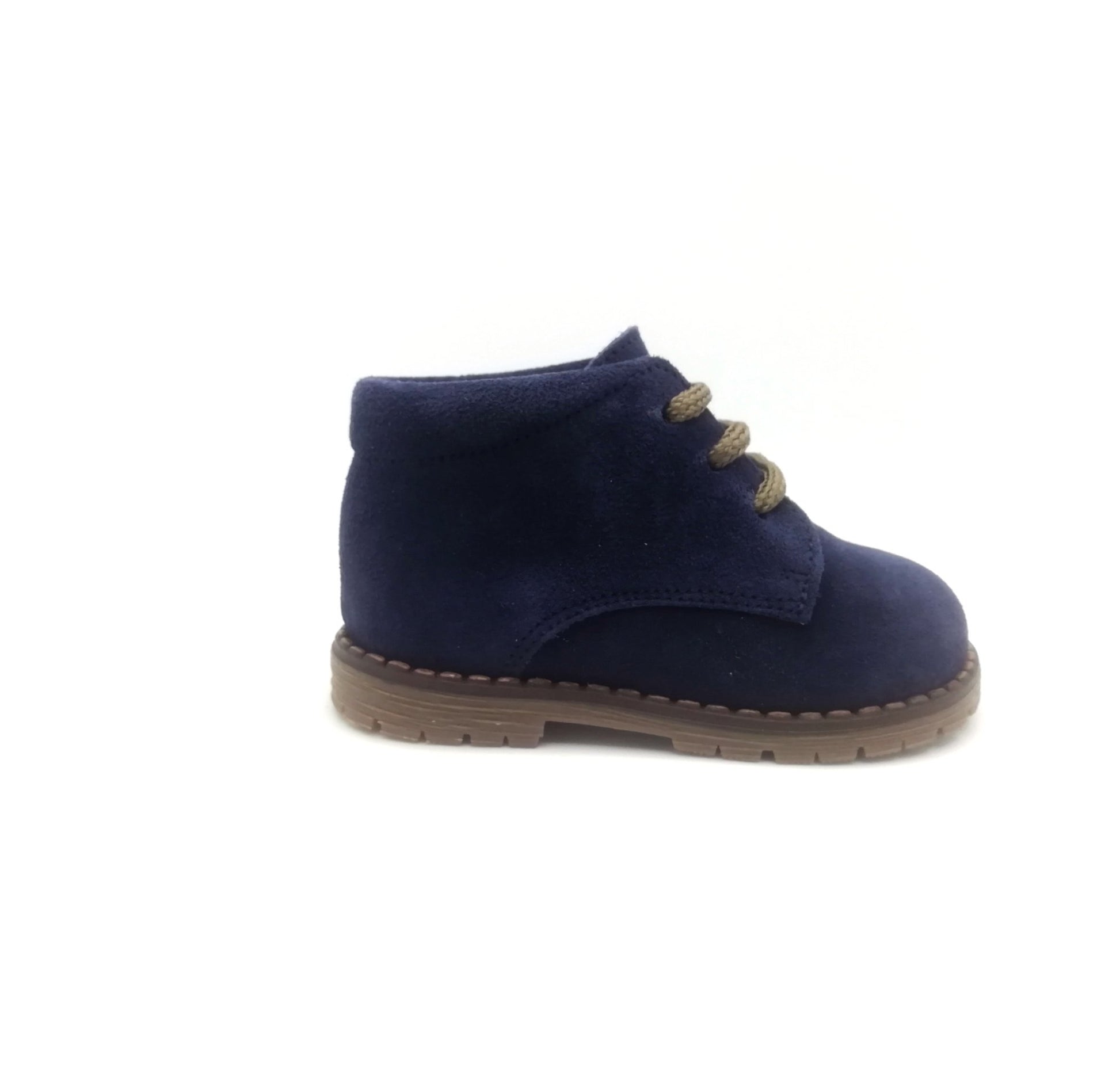 Botita de piel (serraje) en color azul marino marca Pirufín con cierre de cordones y suela antideslizante.