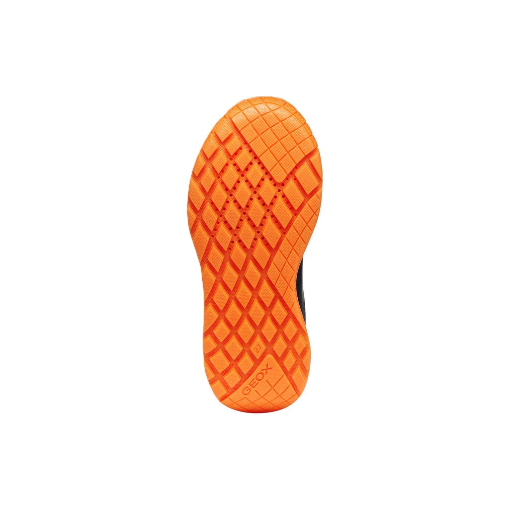 Deportiva para niño que combina un diseño dinámico con detalles llamativos para ofrecer la máxima comodidad en el día a día. Esta versión de RANN-E, de color azul marino y naranja, está fabricado con material efecto piel y nailon para garantizar una mayor ligereza y resistencia. El cierre es de doble velcro, la plantilla extraíble y la puntera reforzada.